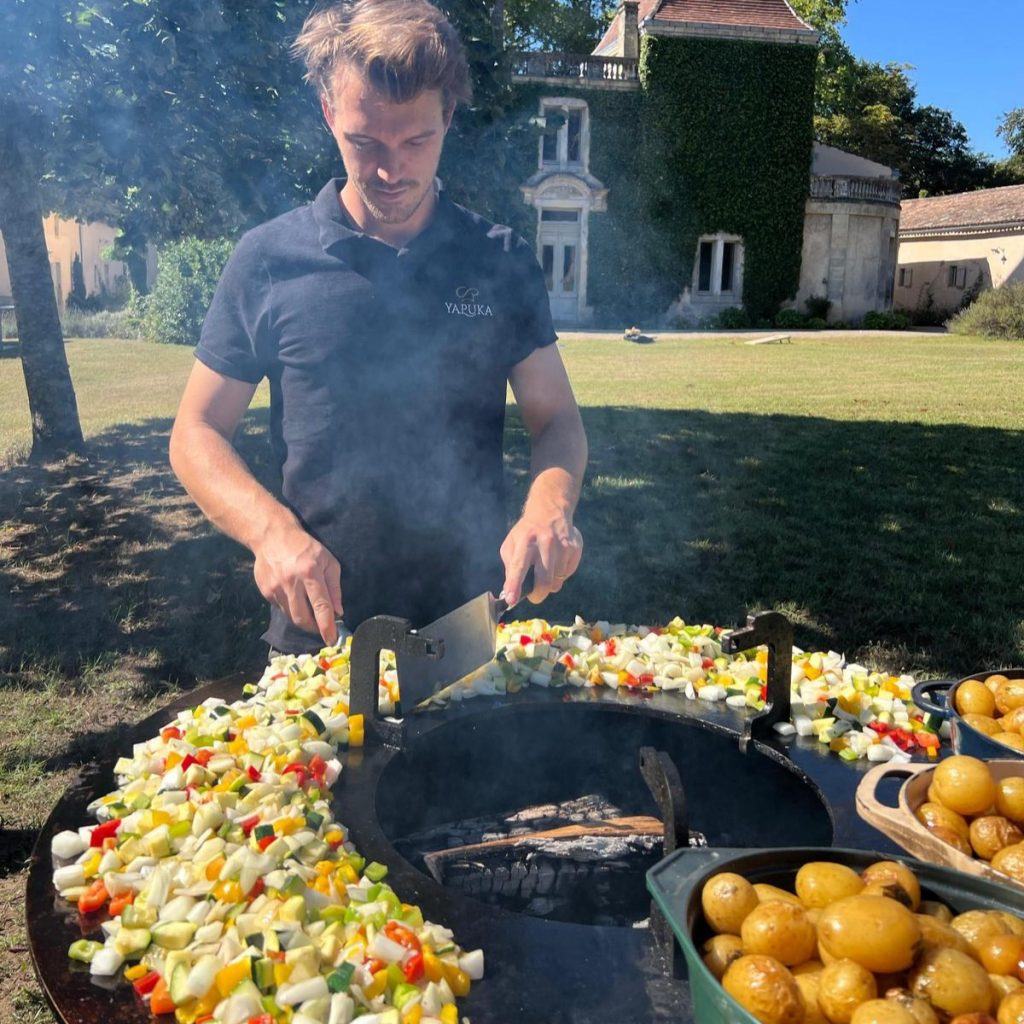 Sous forme d’apéritif dînatoire avec grillades, ou sous forme de buffet, de plats à partager, accompagné de desserts et de fromages !